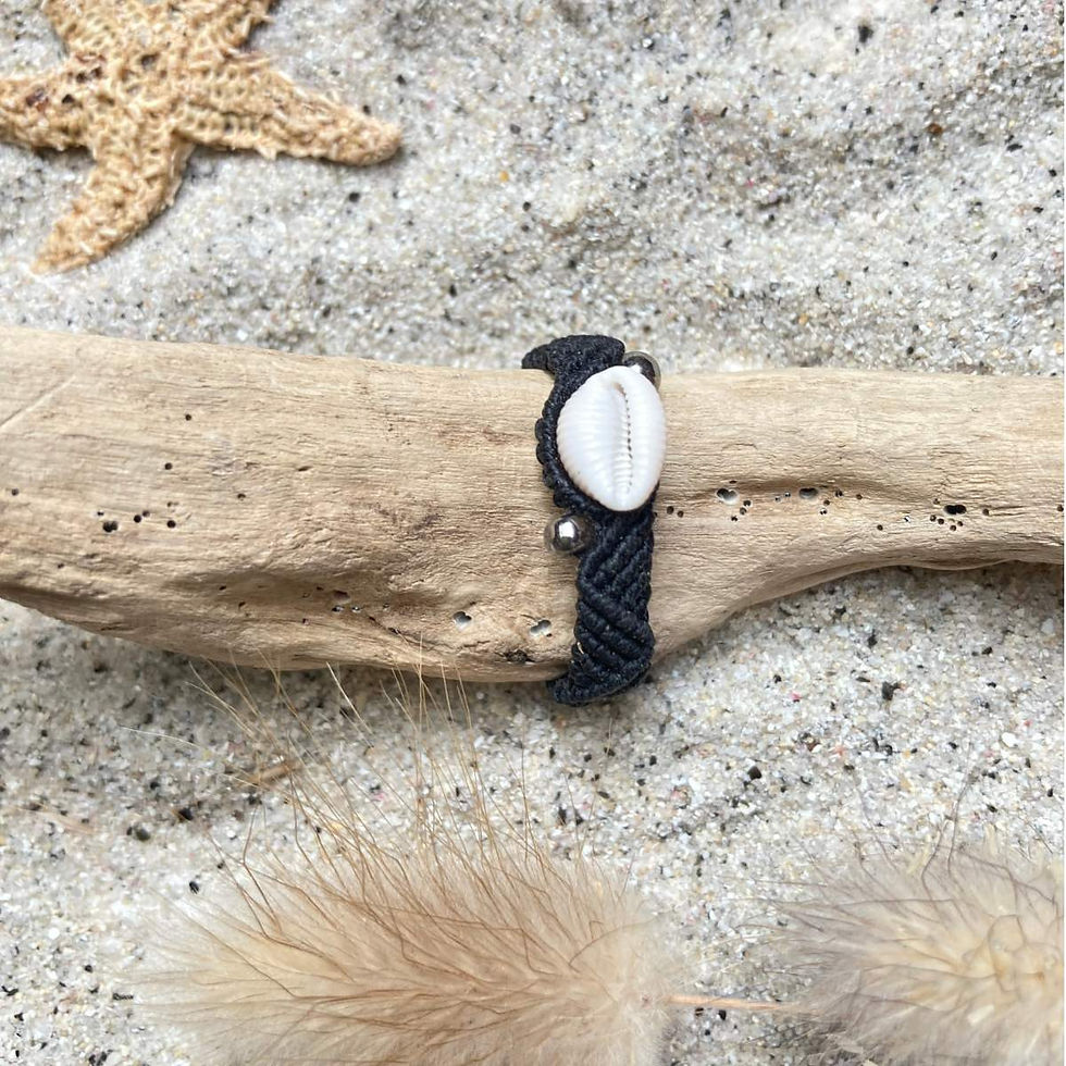 Je conçois des bagues en micro-macramé et coquillage, qui sont confortables à porter sans comprimer les doigts. Légères, colorées et très durables, elles peuvent être portées toute la journée sans souci.